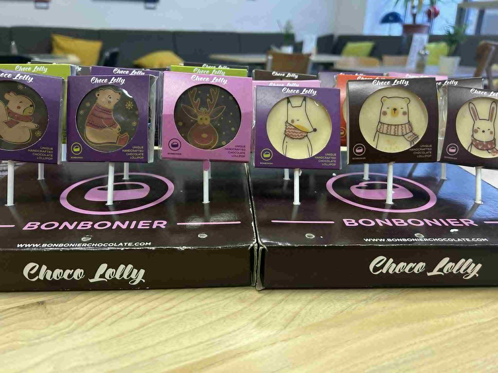 Tejcsokolédé nyalóka karácsonyi/mikulásos designnal. ca.23g.