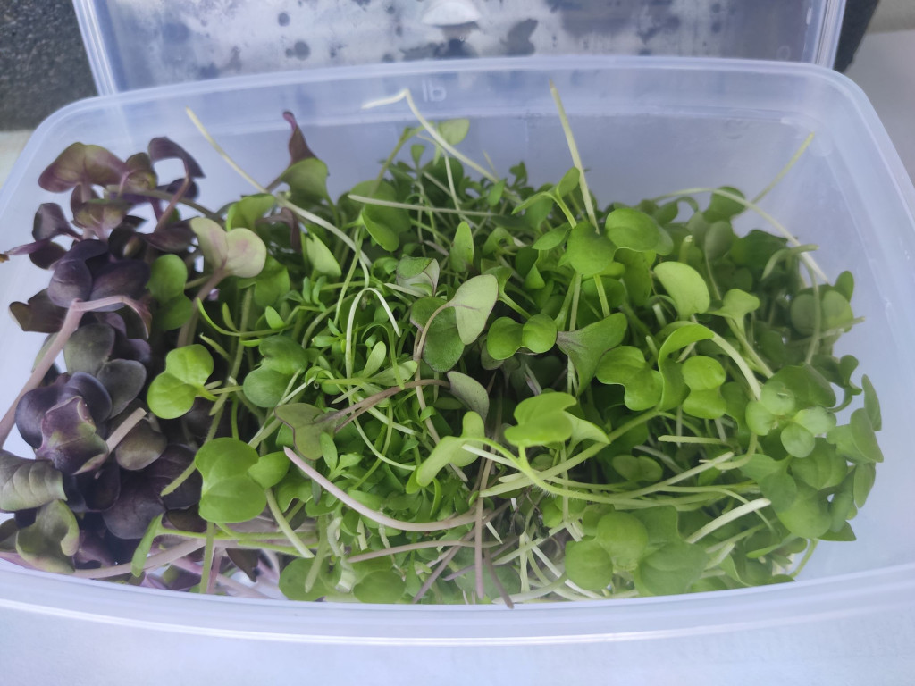 Mikrozöld mix, lehetőleg csípősekből (retek, mustár, zsázsa - változó összetétel).