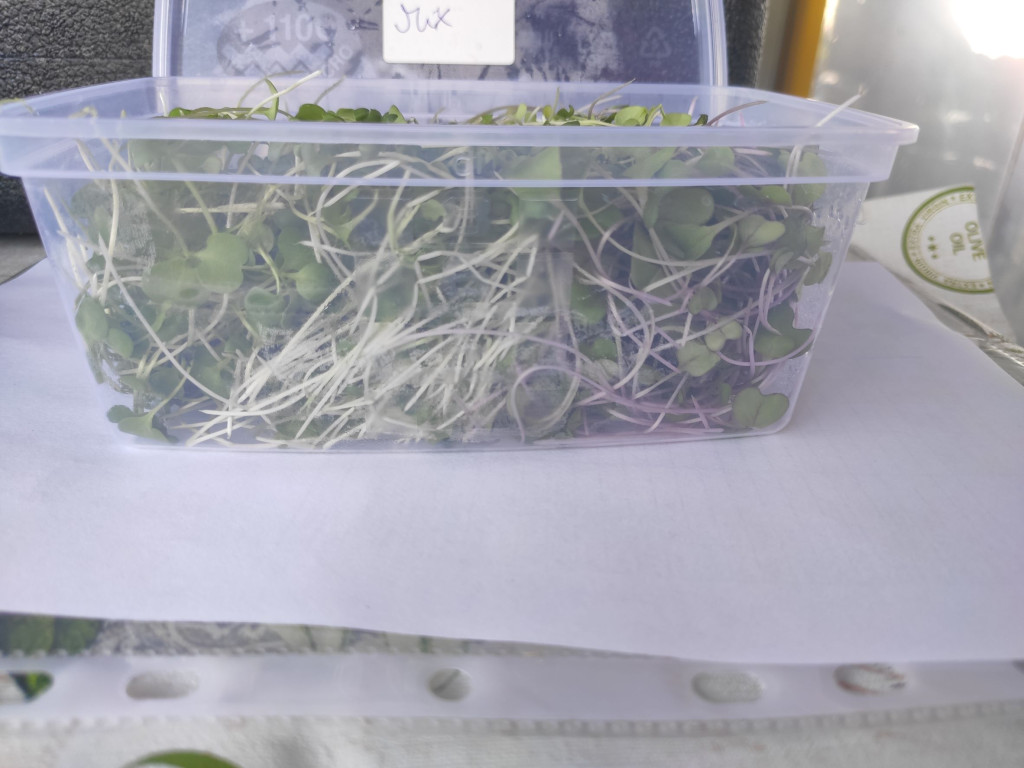 Mikrozöld mix, változó összetételben (nem csípős) (brokkolo, karalábé, mizuna, rukkola - leginkább)