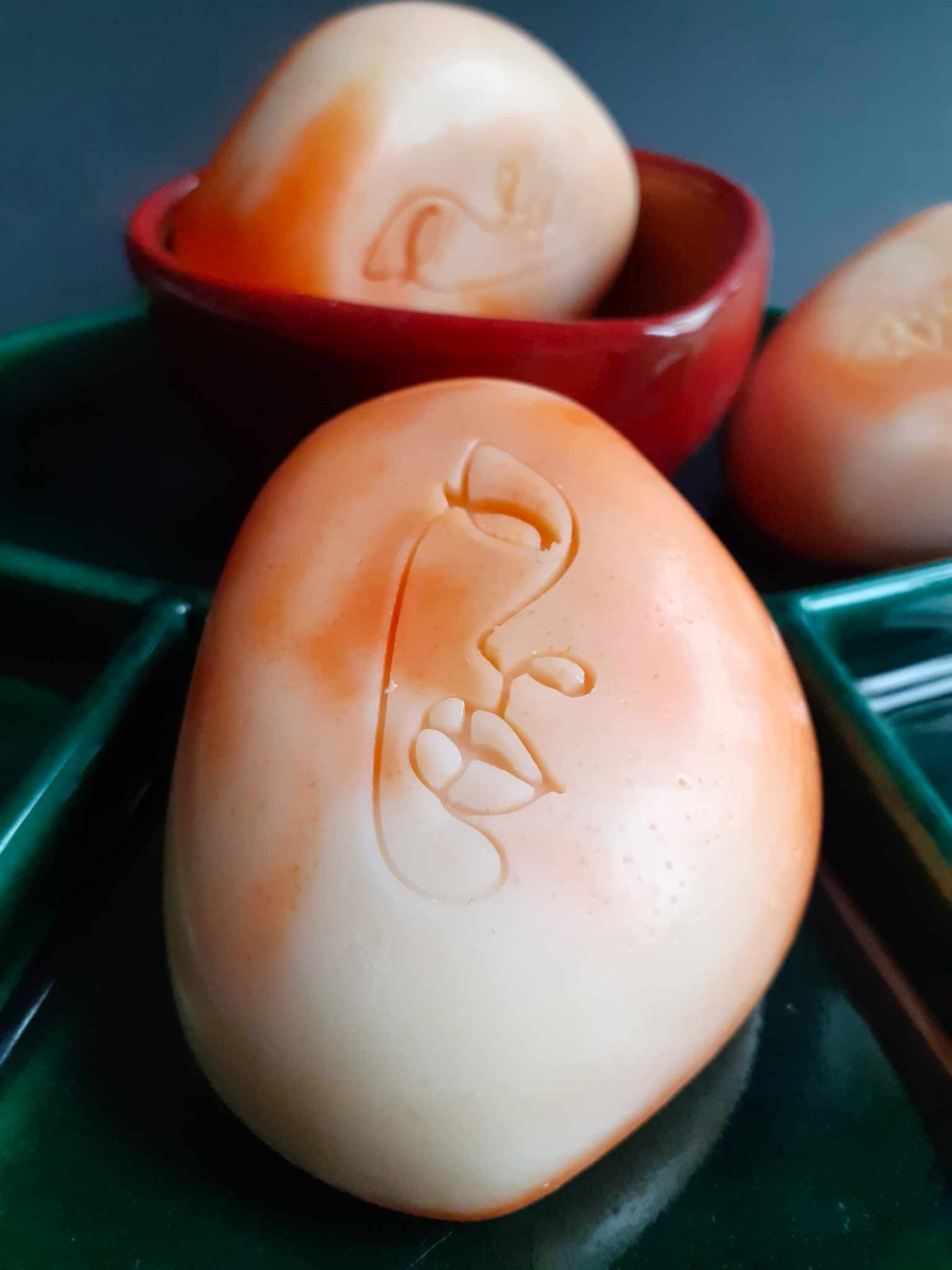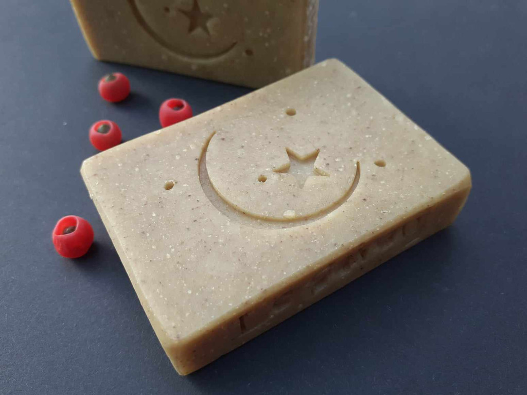 Kubeba - bors szappankövek - 50 % elszappanosított olívaolajjal, 100% természetes kubeba-bors illóolajjal, édes-citrusos, leginkább az idiai citromfűre hajazó, de annál jóval markánsabb illatjegyekkel. Általános bőrtípusra, fürdő és kézmosószappanként ajánlva. " A kubeba illóolaj bőrtisztító, tonizáló, összehúzó, gyulladásgátló, fertőtlenítő hatása miatt elsősorban a vegyes vagy zsíros bőr, pattanások és bőrgomba kezelésére ajánlott."  Összetevők: elszappanosított kókuszolaj, olívaolaj, állati zsiradék, kukoricakeményítő, 100% természetes kubeba-bors illóolaj, mica ( ásványi színező), desztillált víz, nátrium laktát, glicerin* *a szappanosodás során természetes úton keletkezik Ingredients: saponified coconut oil, olive oil, animal fat, corn starch, mica (mineral coloring), 100% natural cubeb pepper essential oil, distilled water, sodium lactate, glycerin* *is produced naturally during saponification