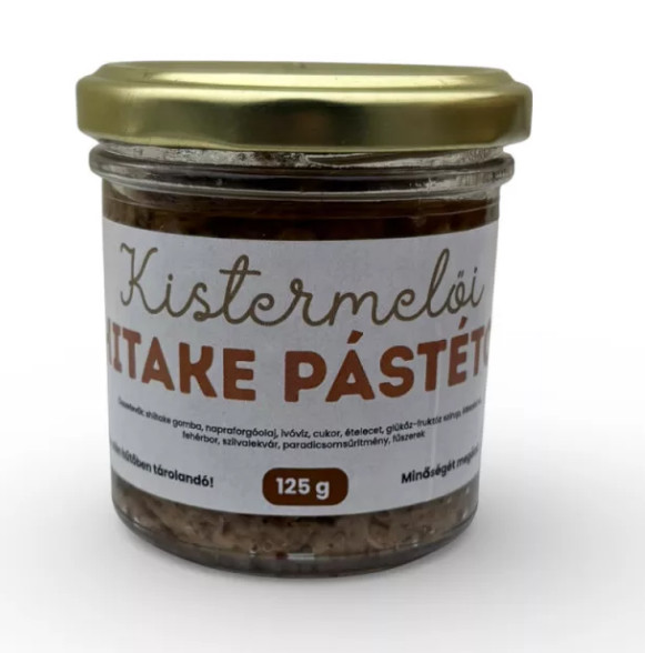 A shiitake pástétom egy selymes állagú, gazdag ízvilágú krém, amely a shiitake gomba természetes, umamis karakterére épül. Gondosan válogatott alapanyagokból készül, kiegyensúlyozott fűszerezéssel, hogy a gomba íze érvényesüljön. A termék hőkezeléssel tartósított, így megőrzi minőségét tartósítószer hozzáadása nélkül. Ideális választás mindennapi fogyasztásra és különleges alkalmakra egyaránt. Felhasználási javaslat friss kenyérre vagy pirítósra kenve szendvicsekhez, wrapekhez hidegtálakhoz, sajttálak mellé zöldségekhez mártogatósként előételként, vendégvárónak Tartósítás és tárolás Hőkezeléssel tartósított Tartósítószert nem tartalmaz Felbontás után hűtőben tárolandó Jellemzők természetes alapanyagok adalékanyag-mentes vegetáriánus gazdag, gombás ízvilág