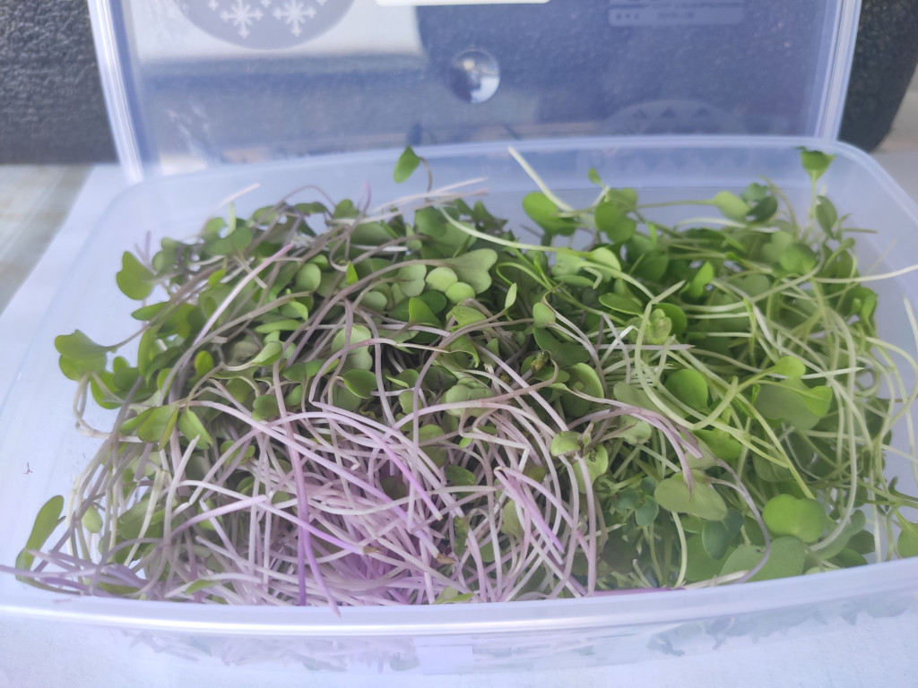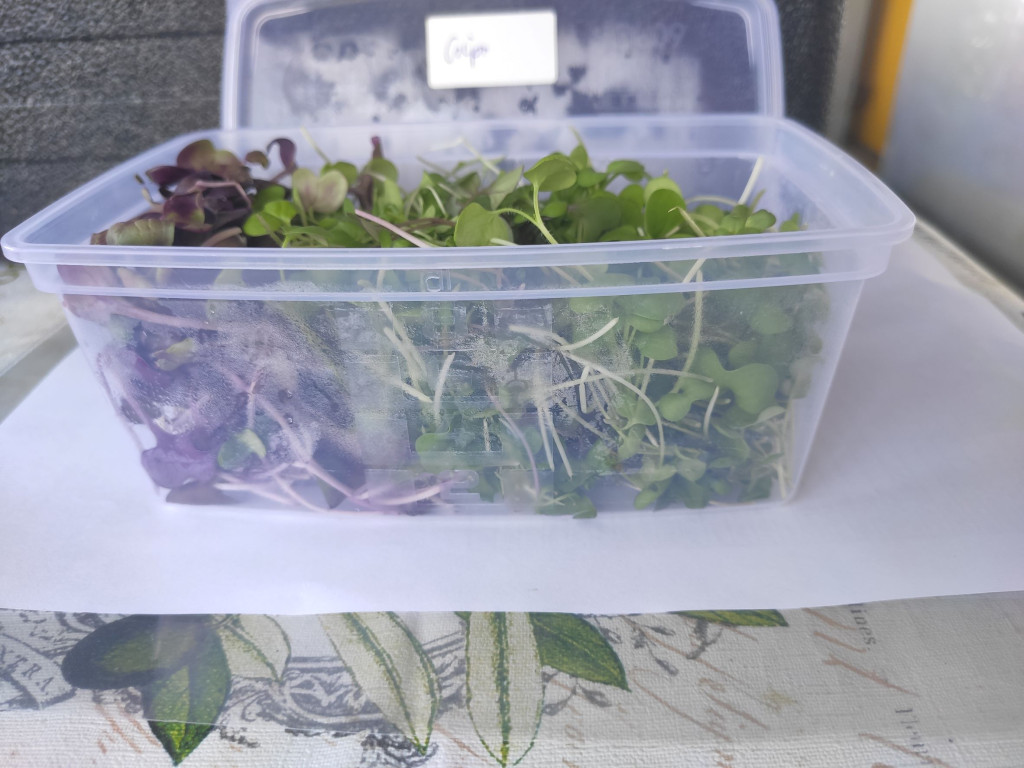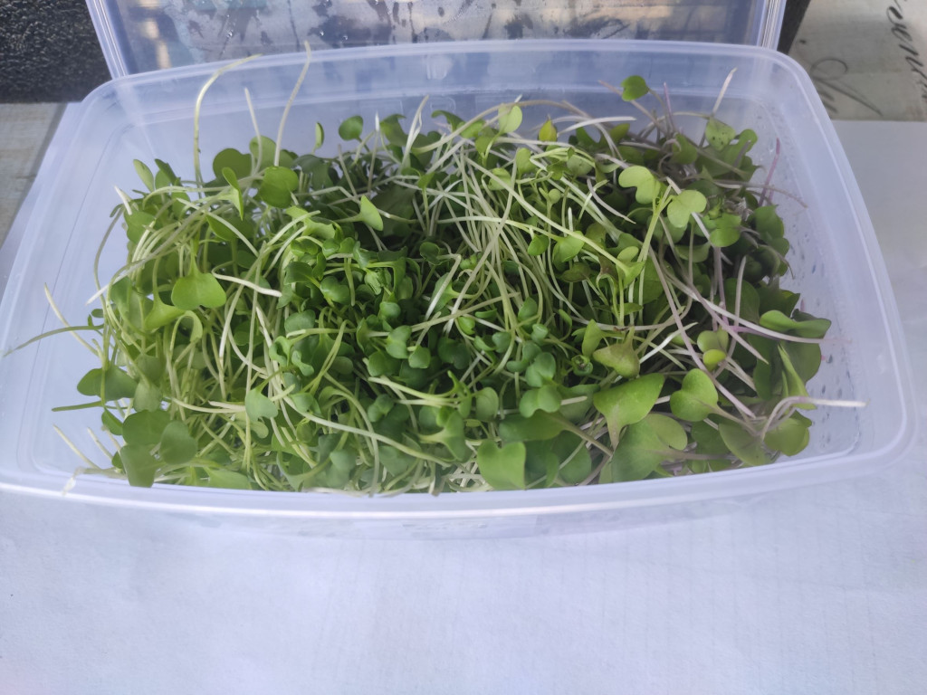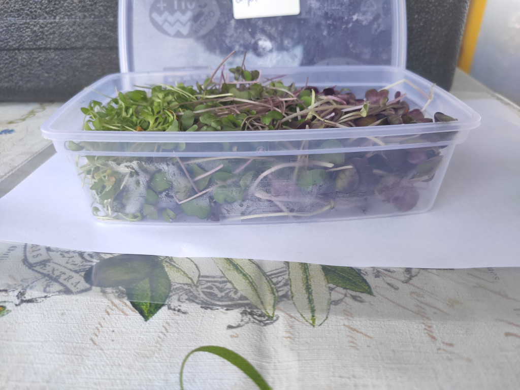 Mikrozöld mix, lehetőleg csípősekből (retek, mustár, zsázsa - változó összetétel). A doboz ára +200Ft, amit visszaveszünk legközelebb.