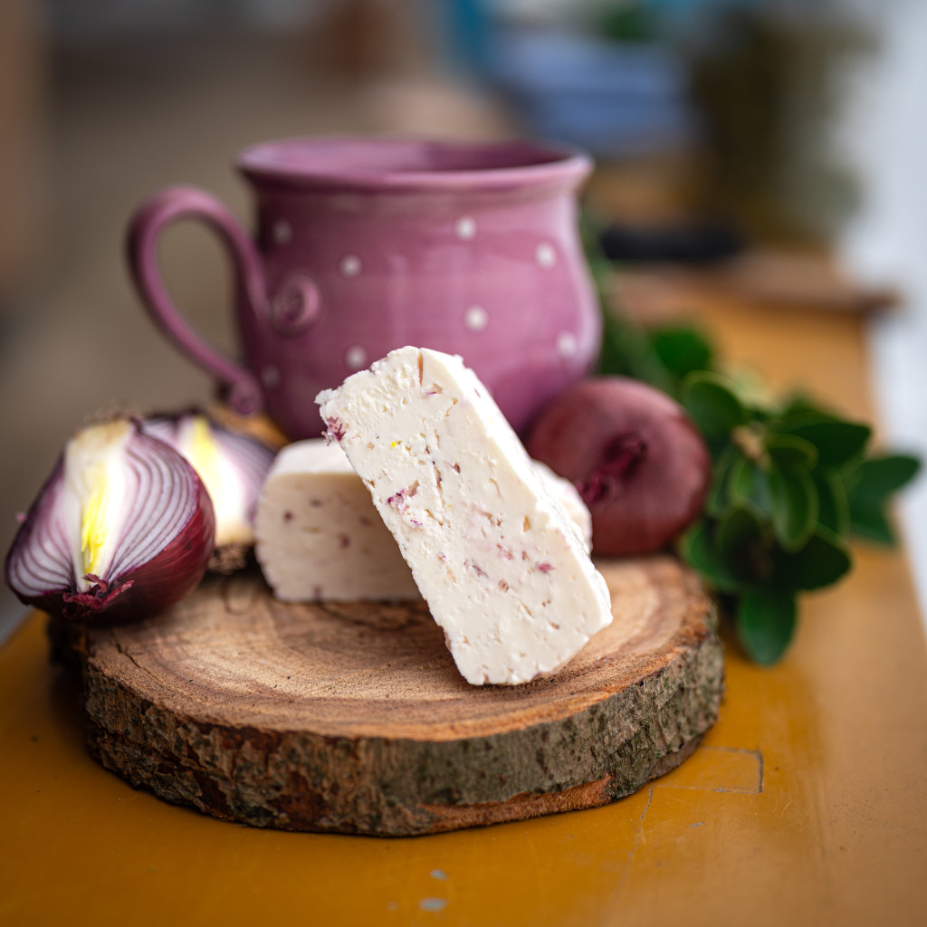 Friss gomolya sajtunkat aprított lilahagymával gazdagítjuk, amely kellemesen harmonizál a sajt lágy, enyhén sós ízével. Friss kenyérrel, salátákhoz vagy hidegtálak részeként ajánljuk.